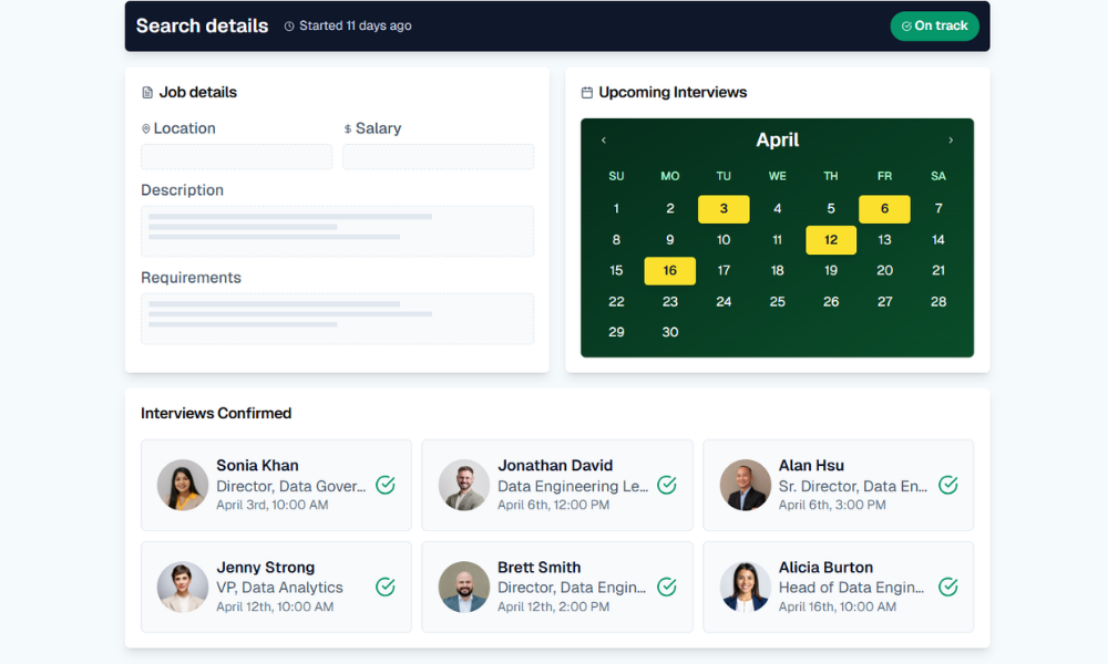With decades of recruitment experience, we know what it takes to run a successful search. From refining role requirements to coordinating interviews and managing offers, we handle the details that keep your hiring process moving. You get full visibility at every stage so hiring aligns with your data strategy.